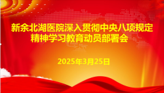 3月25日,新余北湖医院召开贯彻落实中央八项规定精神学习教育动员部署会,医院党支部书记、院长谢小春主持会议并讲话。会上传达学习了中央、省、市以及卫健系统学习教育有关会
